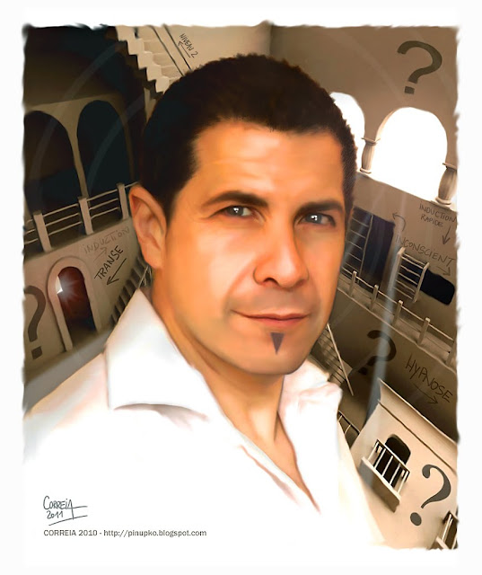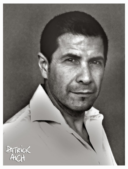 Portrait de l'hypnothérapeute Patrick Aich à la palette et en noir et blanc.